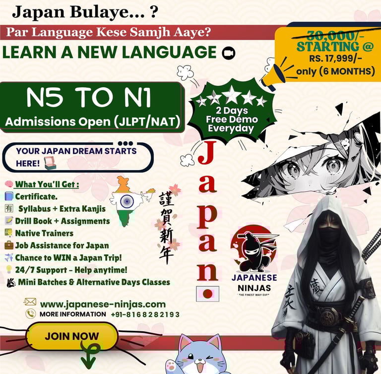 Register now for a 2-day free demo. Limited seats available, so don’t miss this opportunity to learn Japanese!
